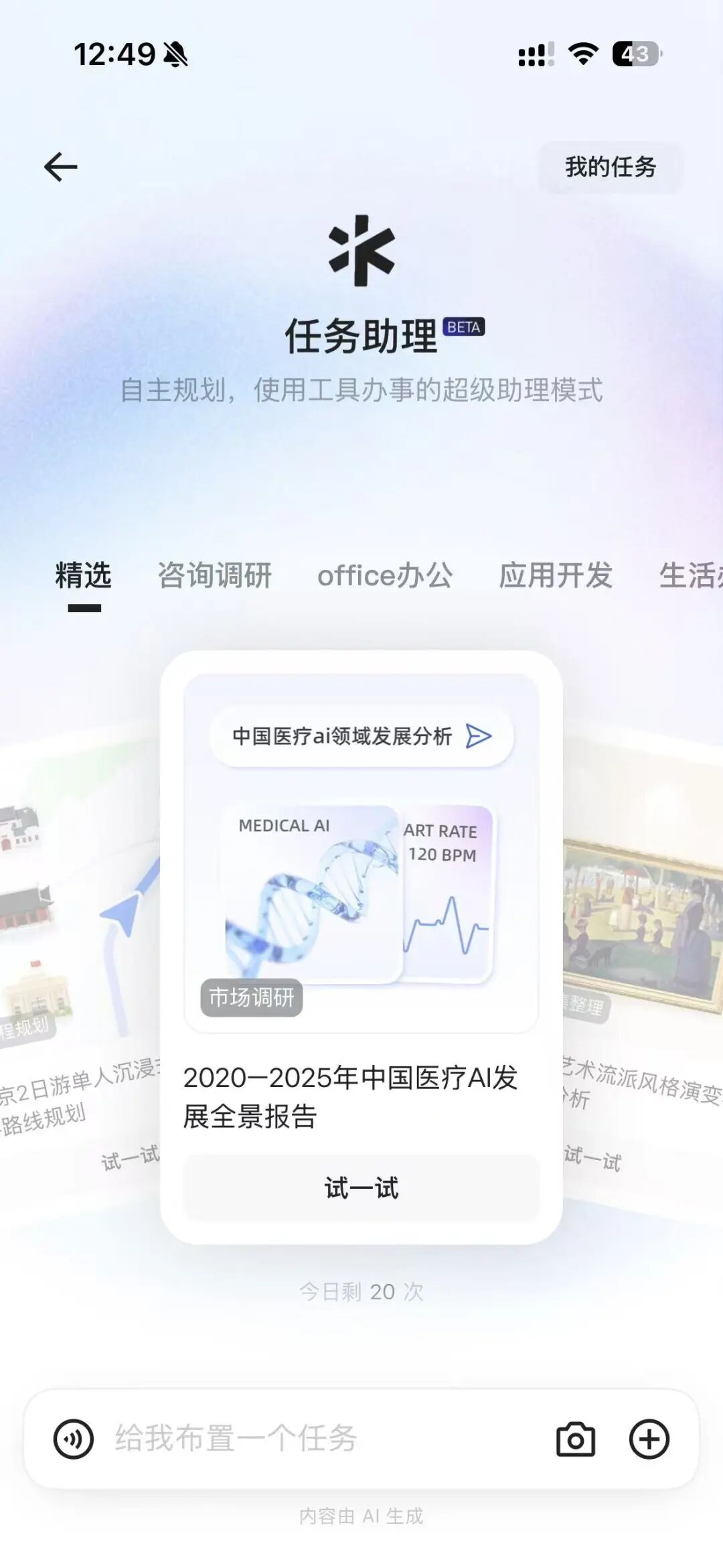 目前,千问“任务助理”功能在App和Web端开始定向邀测。该功能具备类人化的多步骤规划能力,覆盖应用开发、Office办公、咨询调研及生活办事等核心场景,支持一键处理报表整理、研报撰写及小工具生成等复杂任务。